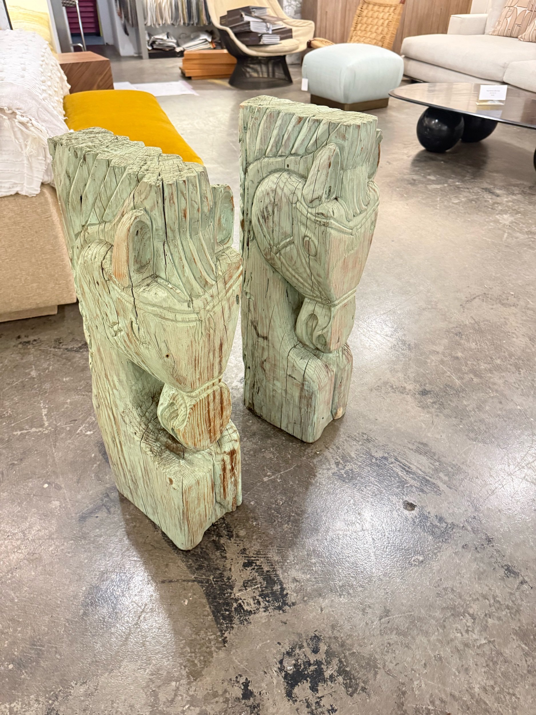 Carved Horse Heads $795.00 31’’H x 11’’D Green Painted Patina Store › Carved Horse Heads Add To Cart Added! 31’’H x 11’’D Green Painted Patina